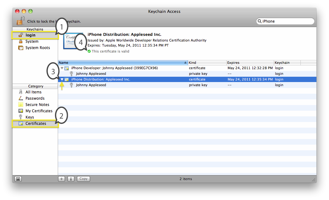 Courses Plus Student 1,602 PointsI don't have the certificate, and in the provisioning profile it just says, "iPhone Developer" not matching anything. How do I get the certificate?