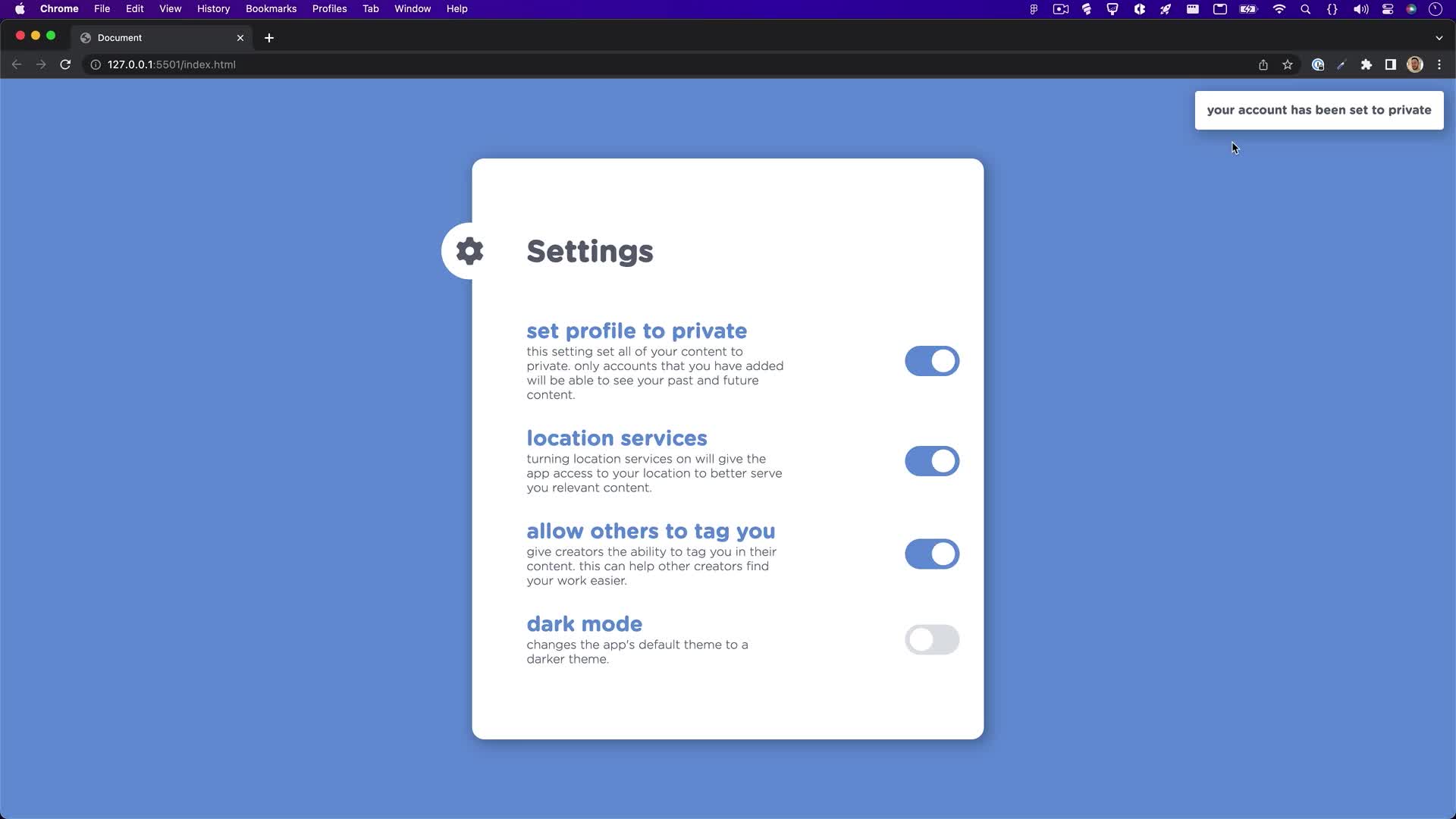 Stick around for the second video to see it in a real-world example! Dustin builds a simple settings app that includes toggle switches and status messages based on the user's input.